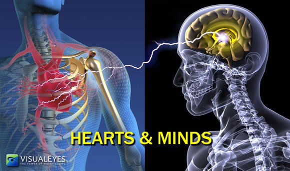 The Mind is wired to learn best through storytelling. The Heart causes us to care about the message. Engage both and you change your world. VISUAL EYES captures the proven power of storytelling to inspire hearts and minds wherever they may be: across the enterprise, in the marketplace, on the road, at home or in the theatre of operations.