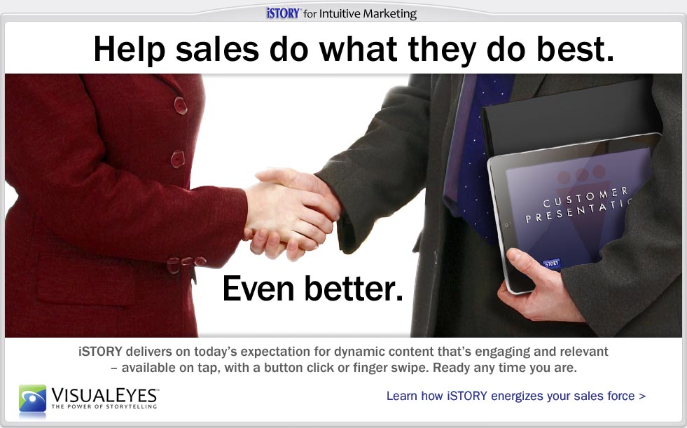 iSTORY revolutionizes the way you communicate your message - online, on the iPad and other mobile devices. The user experience is consistent, compelling and impressive. Your story is told leveraging the Strategic Storytelling System which combines sophisticated interactive multimedia, advanced learning science and best business practices in a unique platform that engages hearts and minds. With that, you capture the scarcest of all resources - human attention! iSTORY enables you to put your best interface forward – the first time and every time.