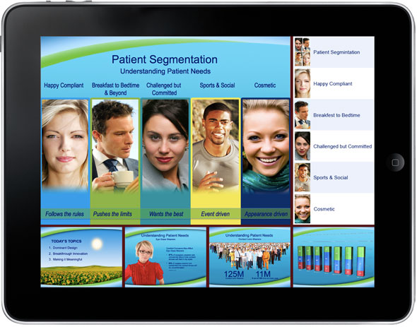 iSTORY is uniquely suited for the iPad. It's a great way for your sales, marketing, professional and technical personnel to do what they do best – only better. It is an effective way to foster interaction and build stronger customer relationships. Your powerful marketing message is easily accessed on an elegant platform that uses the iPad's awesome features to best advantage. This means instant access to video scenarios, product information, demonstrations, subject matter experts, animations - you name it. Power on and you are ready to show your customer, at the tap of a finger. Brilliant!